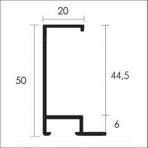 Neutra y de lineas puras. Combinable con los perfiles 01, 02, 03, 04, 06, 15, 95, 99, (cortados al revés) como espaciadores para formar una gran variedad de vitrinas. Uso ideal para vitrinas de gran formato.
